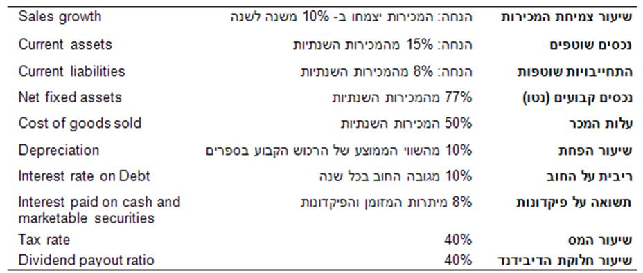 - נכסים שוטפים = שיעור נכסים שוטפים מהמכירות * מכירות